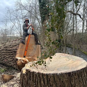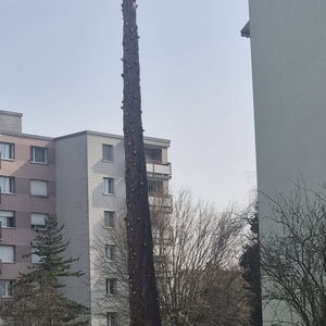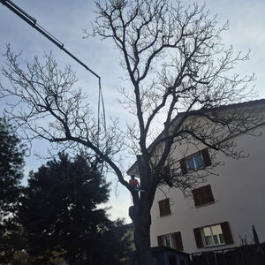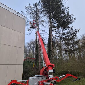 Grosse Buche mit Hebebühne fachgerecht zurückschneiden.