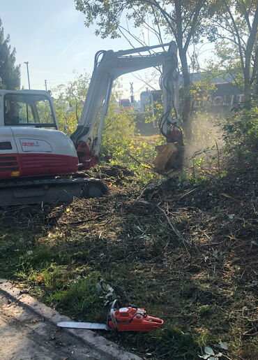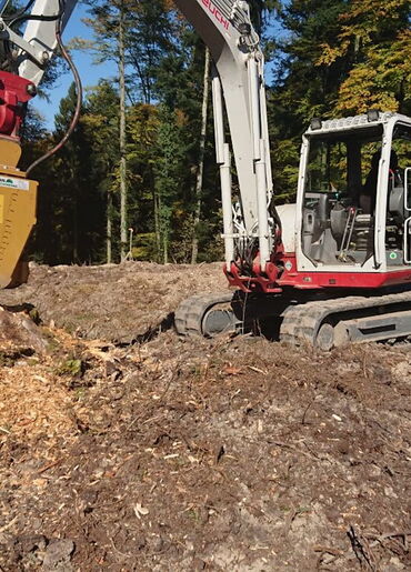 Der Forstmulcher wird zur Rodung von Gestrüpp und kleinen Bäumen verwendet.