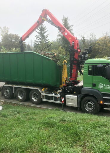 Der Lastwagen wird genutzt für den Transport von Holz, Ästen und der Hebebühne.