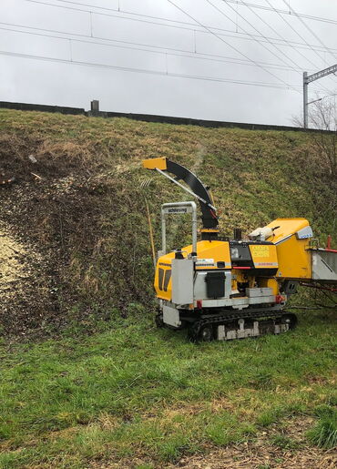 Besitzt verstellbare Raupen, dadurch ist er ideal für das Hacken an unzugänglichen Orten.